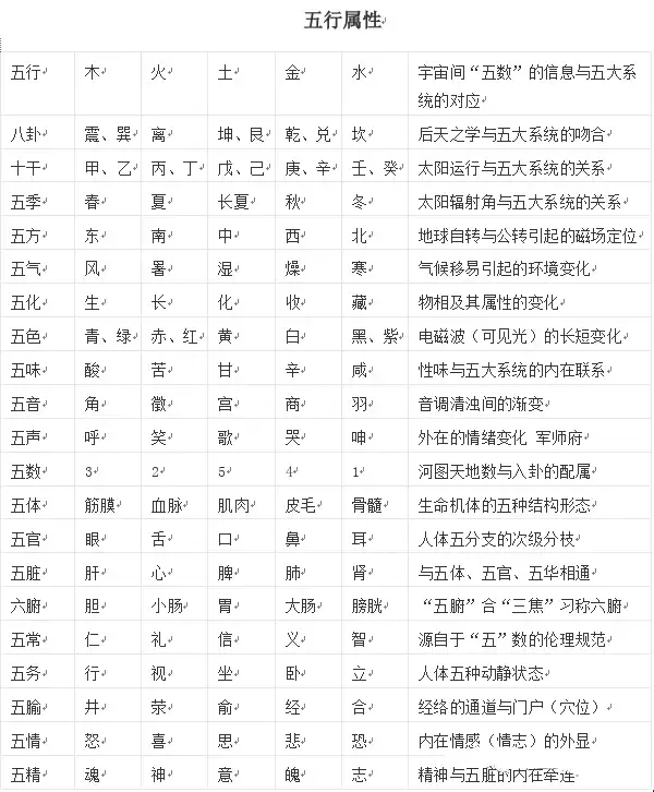 乾、兑金;坤、艮土;震、巽木;坎水;离火
