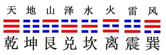 首先是利用“乾三连,坤六断,震仰盂,艮覆碗,离中虚,坎中满,兑上缺,巽下断。”这句八卦卦象口诀,结合图像,熟记八卦的卦象。