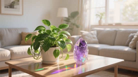 绿植是天然的“能量转换器”——绿萝能吸甲醛、吊兰能净化空气、虎皮兰晚上释放氧气,放在客厅或卧室,既能装饰又能提升活力;水晶则是“能量平衡仪”,紫水晶缓解焦虑(放卧 室)、黄水晶提升财运(放客厅),选一块喜欢的,放在显眼的位置。