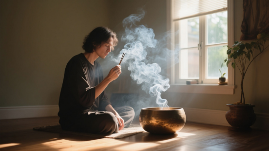 如果房子里有挥之不去的压抑感(比如刚搬入的二手房、经历过不愉快的事),可以用仪式感化解:点一支天然檀香(或艾条),从门口开始绕房间走一圈,默念“所有负面能量都离 开”;或者用颂钵敲3下(低频声音能震动空间能量),让负面情绪“散开来”。