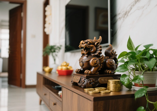 貔貅神态威武,是偏财与 推销行业的「风水利器」,收入浮动者摆放可提升运势。摆放时头向门或窗外有利偏财,但 正财需搭配龙神座。